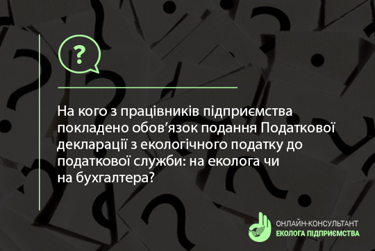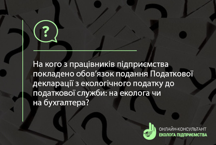 На кого з працівників підприємства покладено обов’язок подання Податкової декларації з екологічного податку до податкової служби: на еколога чи на бухгалтера? І яким нормативним актом це регламентовано?
