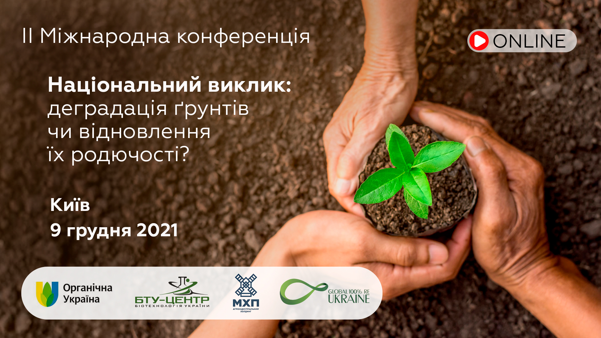 Запрошуємо Вас долучитися до міжнародної конференції «Національний виклик: деградація ґрунтів чи відновлення їх родючості», платформи для відкритого діалогу між науковцями, бізнесом і представниками державної влади. Захід проходить уже вдруге до дня ґрунтів та покликаний стабілізувати партнерство між державою, бізнесом і наукою для здійснення важливих стратегічних кроків щодо відродження родючості ґрунтів.