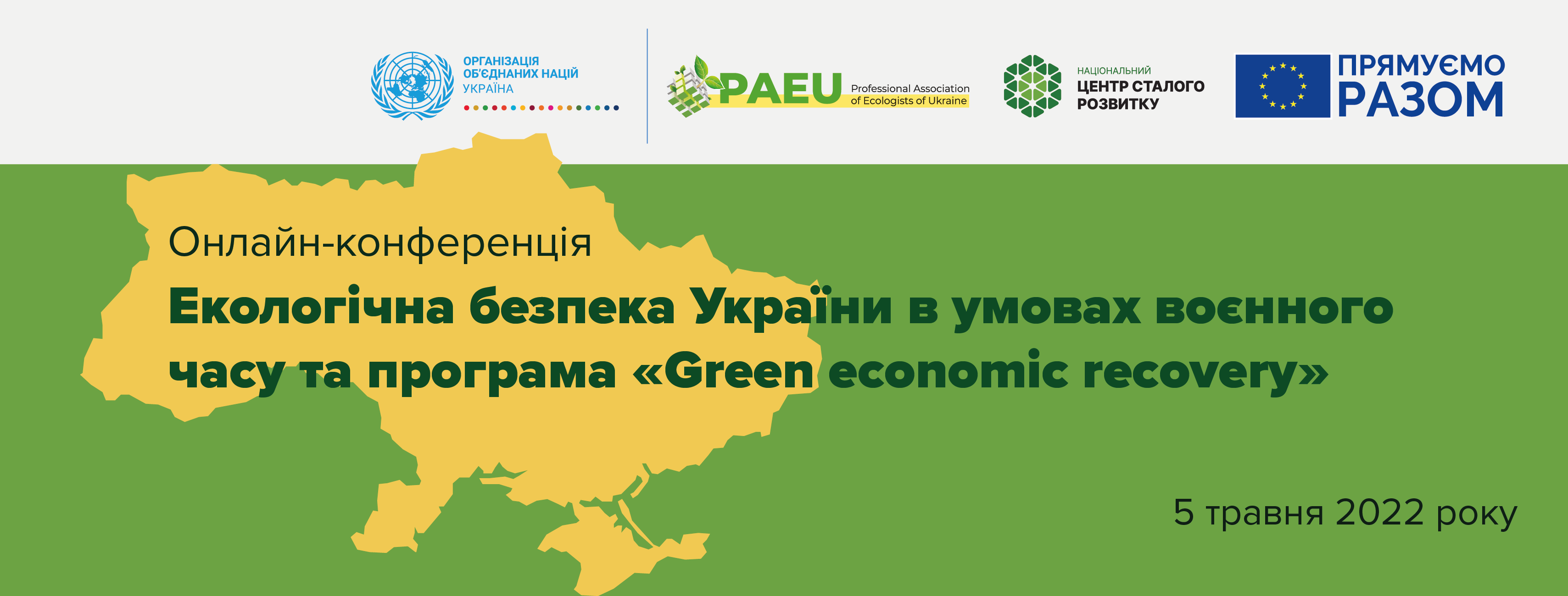 Конференція «Екологічна безпека України в умовах воєнного часу та програма «Green economic recovery» вже 5 травня у форматі онлайн консолідуватиме бачення понад 200 учасників: посадових осіб, представників територіальних громад, фахівців та експертів щодо майбутньої стійкої відбудови України після війни та забезпечення її екологічної безпеки, доки бойові дії ще тривають.