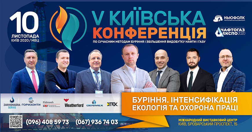 V Київська конференція з сучасних методів буріння і збільшення видобутку нафти і газу «БУРІННЯ. ІНТЕНСИФІКАЦІЯ. ЕКОЛОГІЯ ТА ОХОРОНА ПРАЦІ» в рамках V міжнародної спеціалізованої виставки «НАФТОГАЗЕКСПО-2020» відбудеться 10 листопада 2020 року в Києві.