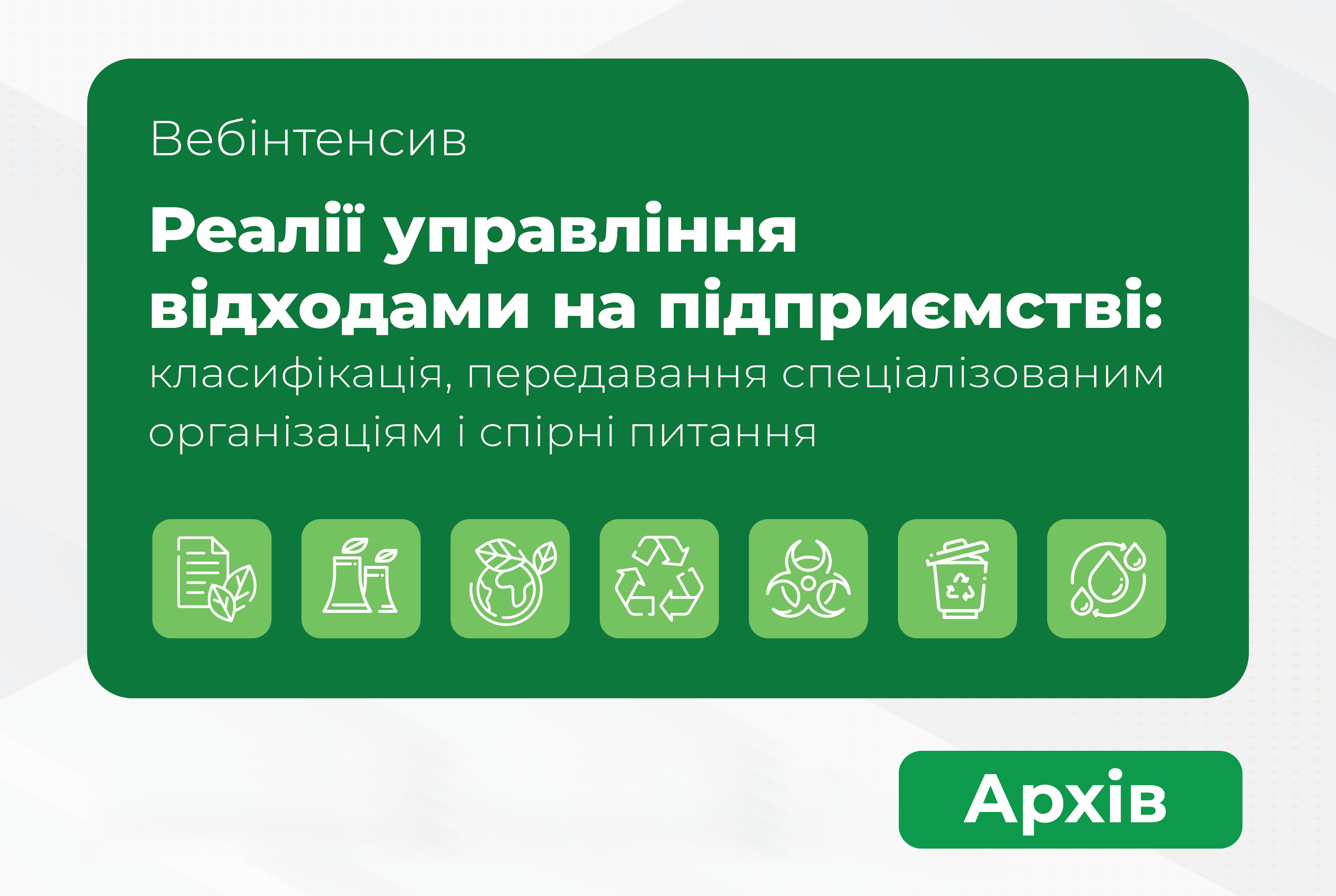 Вебінтенсив "Реалії управління відходами на підприємстві: класифікація, передавання спеціалізованим організаціям і спірні питання"