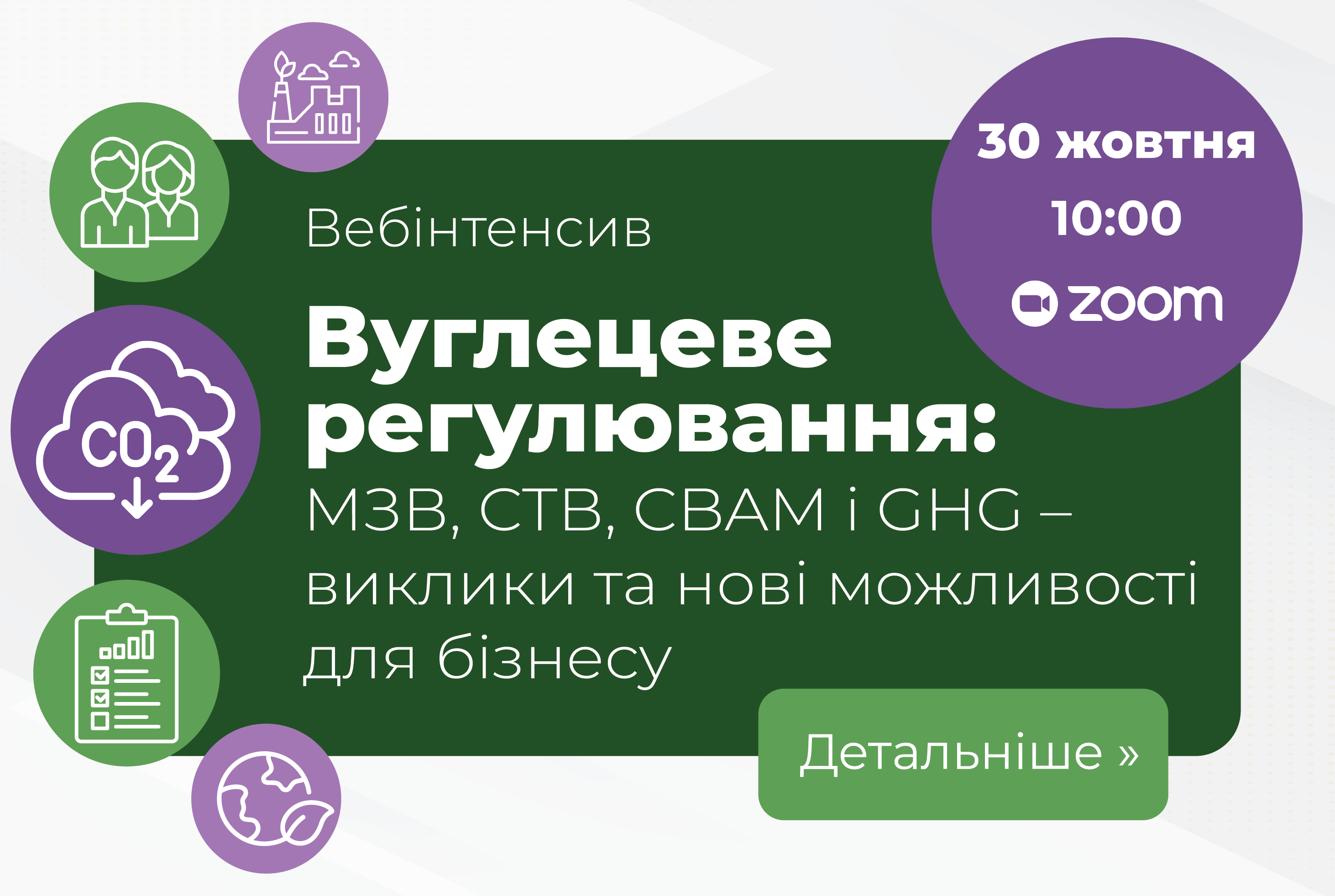Тому запрошуємо вас на вебінтенсив «Вуглецеве регулювання: МЗВ, СТВ, CBAM і GHG – виклики та нові можливості для бізнесу», де без «води» ви дізнаєтеся: