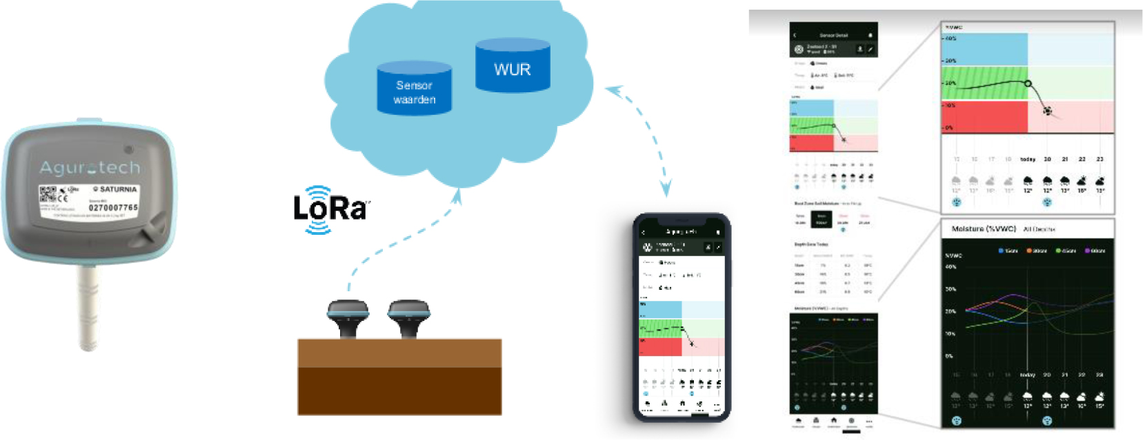 Бездротові датчики Agurotech вимірюють вологість ґрунту, вологість та тиск повітря, температуру повітря та ґрунту, електропровідність, а також додані дані про погоду. Ці дані дозволили учасникам пілотного проекту протягом сезону отримувати точні рекомендації щодо поливу, а саме: де, коли і скільки (об'єм води в мм.) поливу необхідно вносити, щоб досягти підвищення продуктивності своїх фермерських господарств та сталого зростання.