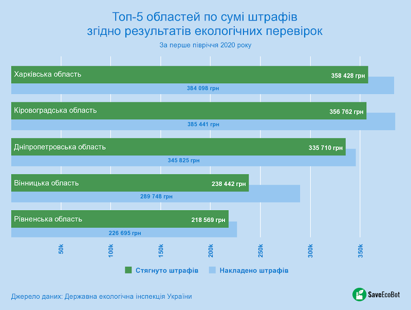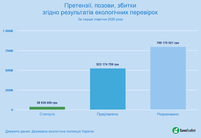 Дані про екологічні перевірки за 1 півріччя 2020 року від SaveEcoBot