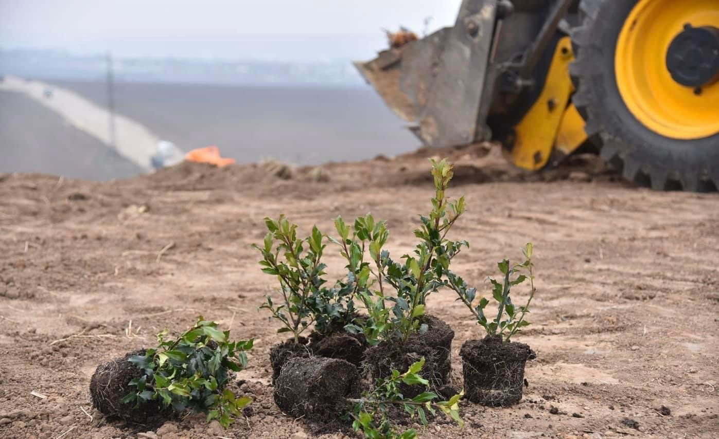 Озеленення - завершальний етап рекультивації старого полігону. Раніше для запобігання потраплянню полігонного газу в атмосферу його вкрили геомембраною, зверху уклали шар фільтрації і насипали грунт.