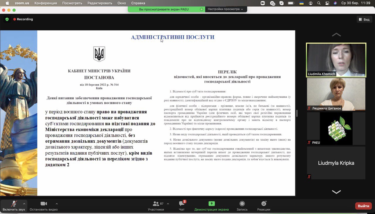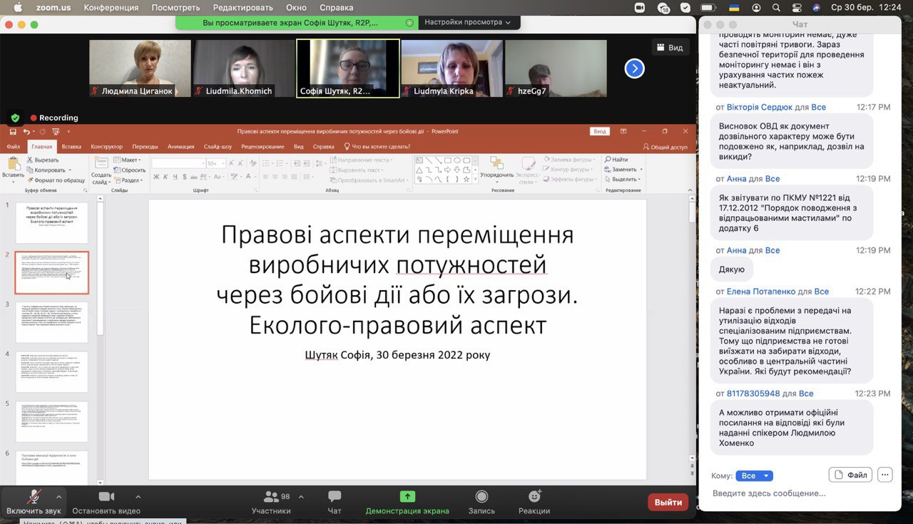 Понад 100 представників бізнесу та влади зібрав вебінар «Робота еколога підприємства в умовах воєнного часу-2022», організований зусиллями профспілки екологів ПАЕУ та НЦСР