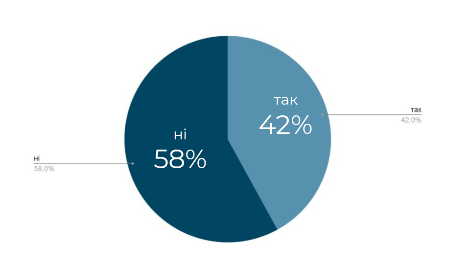 1. В довоєнний період проекти енергомодернізації впроваджували лише 42 % опитаних (56 – Так, 76 – Ні)