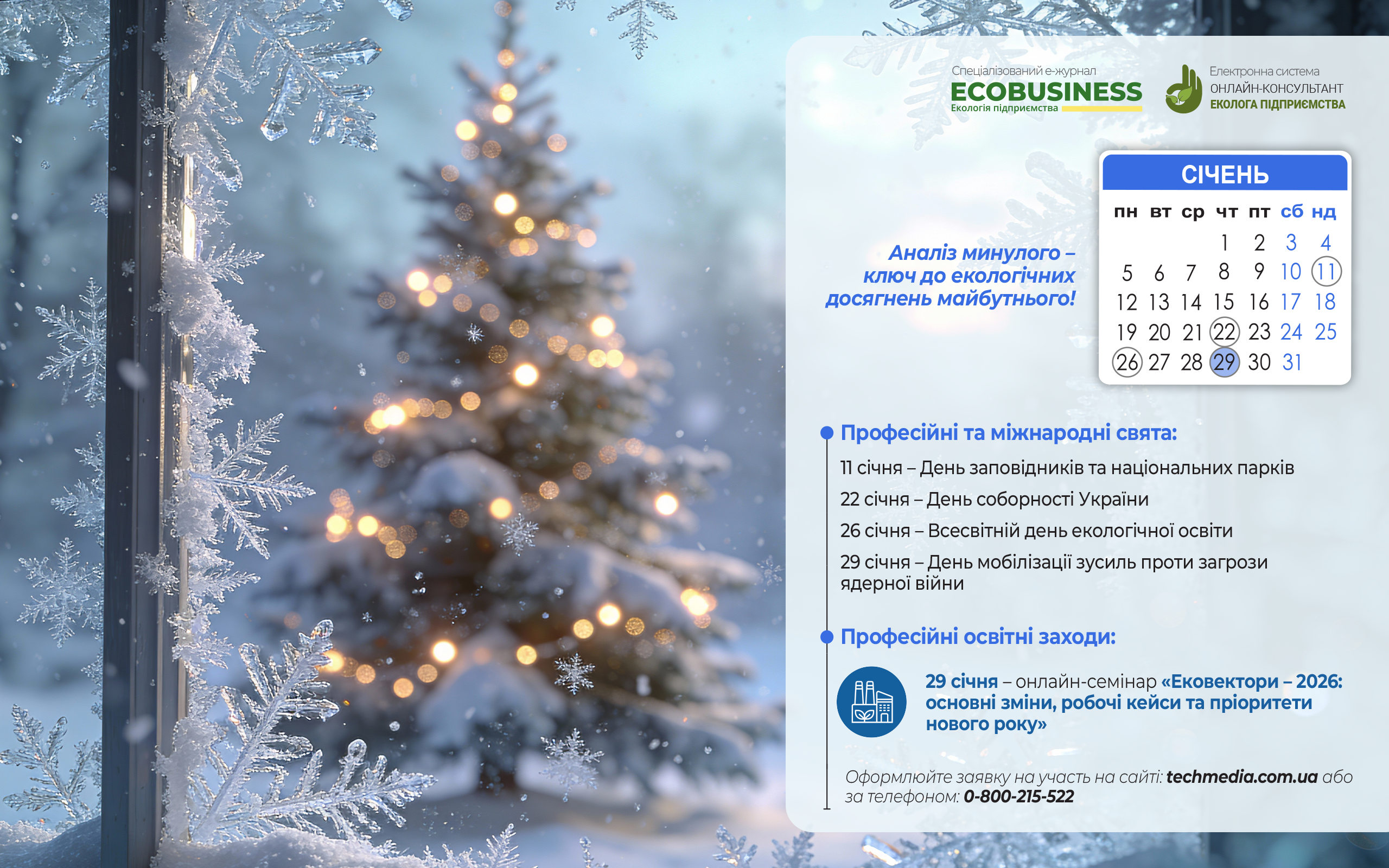 Колеги, пропонуємо вашій увазі заставку-календар для робочого столу із зазначенням важливих дат для еколога у січні.