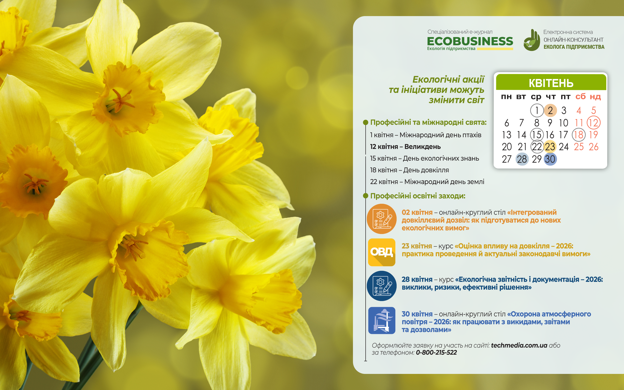 Колеги, пропонуємо вашій увазі заставку-календар для робочого столу із зазначенням важливих дат для еколога у квітні.