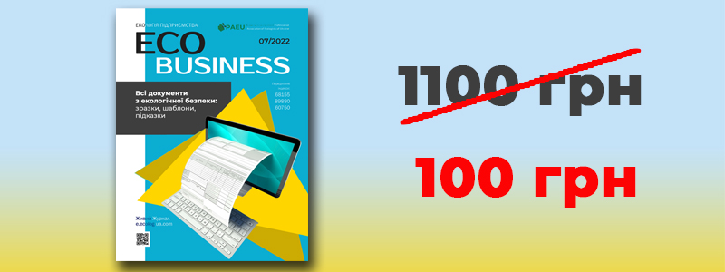 Кожен, хто пройде дистанційне підвищення кваліфікації з 9 серпня 2022 з розробки екологічної документації на підприємстві, отримає ексклюзивний повний електронний збірник всіх наказів, зразків і шаблонів за 100 грн. (замість 1100 грн.)