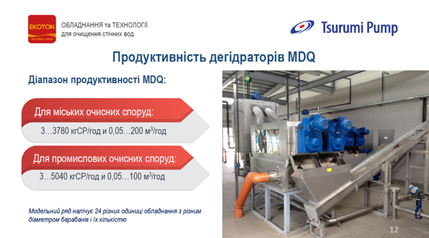 Промислова група Екотон провела вебінар на тему «Шнекові зневоднювачі осаду MDQ EKOTON - Tsurumi Pump» для фахівців-екологів, інженерів та технологів підприємств водокористувачів, які потребують модернізації в очищенні стічних вод. В рамках вебінару відбулася презентація унікальної установки для зневоднення осаду на базі мультидискового шнекового дегідратора MDQ-450.