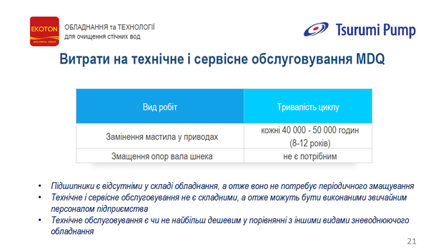 Мультидискові шнекові дегідратори також відрізняються низькими експлуатаційними витратами і практично не потребують сервісного обслуговування.