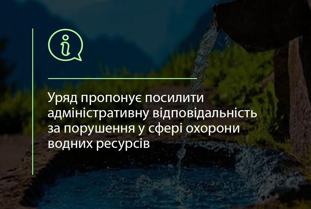 Кабінет Міністрів України схвалив проєкт Закону України «України «Про внесення змін до Кодексу України про адміністративні правопорушення з метою посилення відповідальності у сфері охорони і раціонального використання вод та відтворення водних ресурсів».