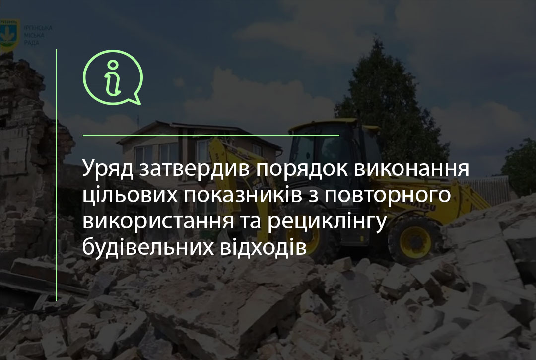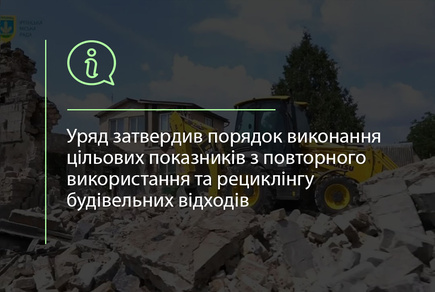 Кабінет Міністрів України 5 лютого 2026 року схвалив постанову «Про затвердження Порядку виконання цільових показників щодо підготовки відходів будівництва та знесення до повторного використання, рециклінгу, іншого матеріального відновлення, включаючи зворотне заповнення».