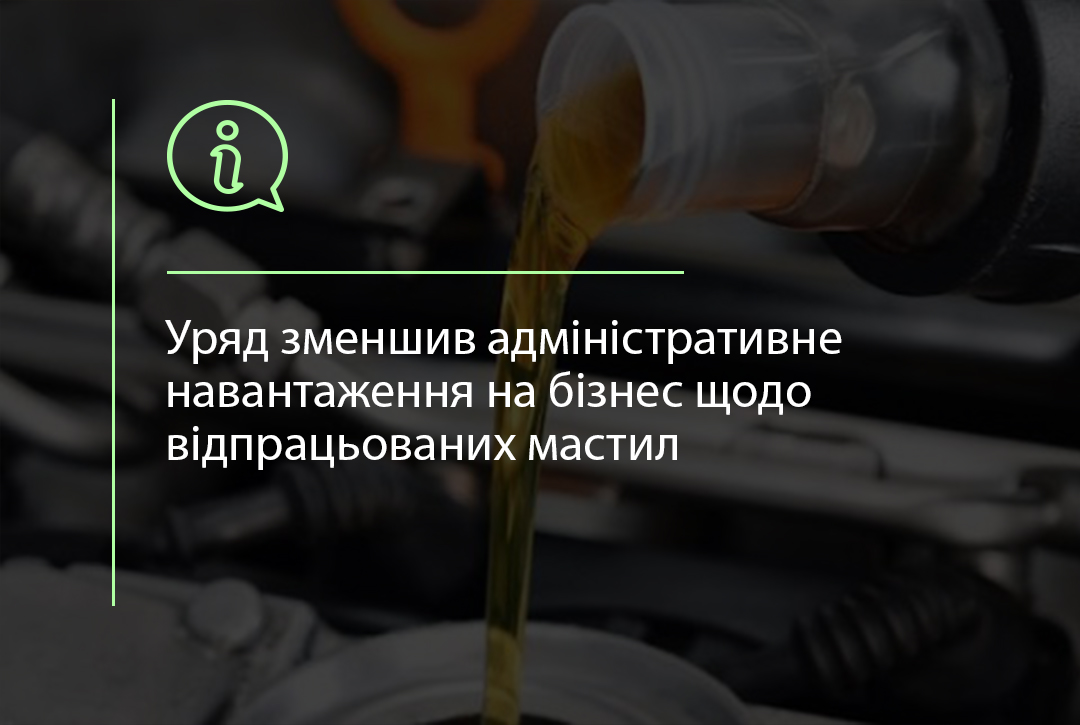 Уряд зменшив адміністративне навантаження на бізнес щодо відпрацьованих мастил