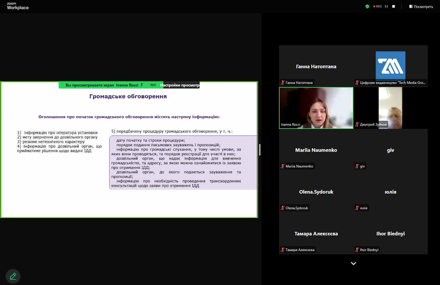 Другу частину вебінтенсиву провела Іванна Чугуй, розробниця екологічної документації, провідна експертка системи «Онлайн-консультант еколога підприємства».