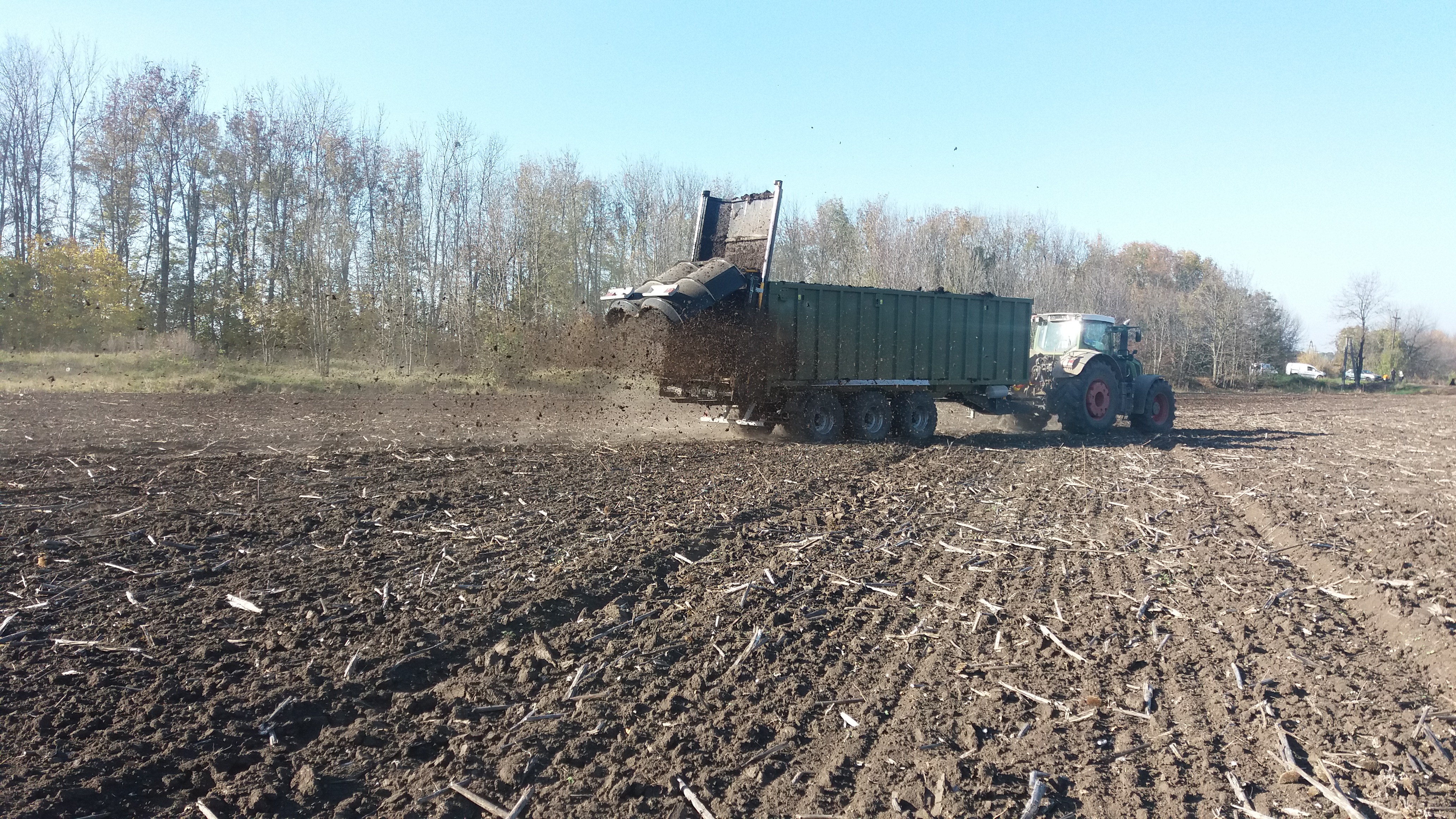 У польових буртах суміш затримується від кількох днів до півроку, поки буде внесена на поля розкидачами виробників Pronar і Annaburger. За добу можливо внести добриво на площу 150 га. Саме в період внесення суміші розповсюджується її неприємний запах — нікуди від цього не подінешся, бо вся органіка має свій специфічний «аромат», який чути до тих пір, поки добриво не приореться трактором, який іде відразу за розкидачами.